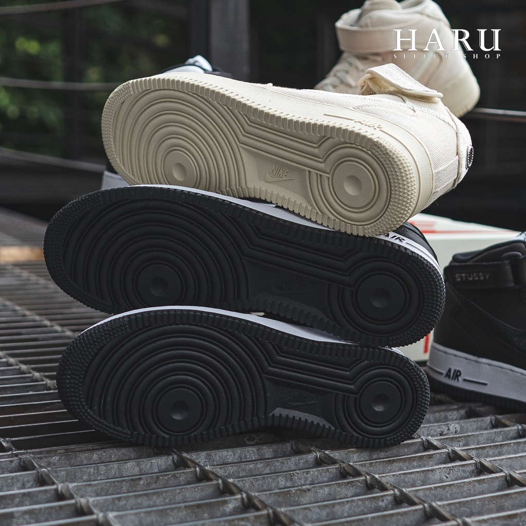 在過去 20 年裡,Nike 和 Stüssy 不僅聯手合作,更一起進化。兩大品牌互相交流想法和理念,並發揮影響力和意念,連結運動、音樂、藝術和文化。Air Force 1 中筒鞋最初是 90 年代的街頭必備單品,後來旋即風靡全球。Stüssy 在打造最新聯名款式時,毫無疑問地選擇了此鞋款作為設計基礎。採用大膽的全黑皮革鞋面,向 Nike x Stüssy 的過往致敬。具有蛇紋印花 Swoosh 及 Stüssy 刺繡字樣束帶,鞋尖和鞋跟搭配精緻的品牌標誌,為造型畫龍點睛。此外,這款 AF1 同樣沿用 Nike Air 技術,在步伐之間實現吸收衝擊的緩震效果。